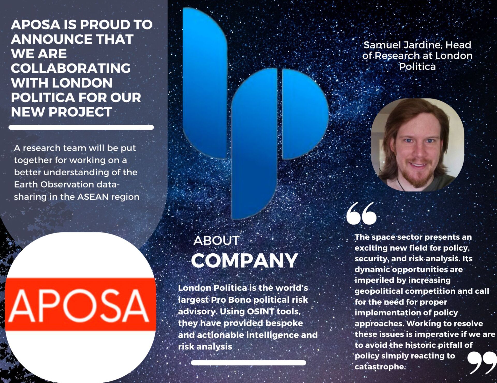 I am absolutely thrilled to be leading London Politica's team collaborating with the Asia-Pacific Oceania Space Association (APOSA). We aim to provide research, analysis and ideas for the exciting and dynamic space sector; its security, space technology, space policy, and space industry as well as looking into its opportunities and risks, particularly through a policy, geopolitics, and politics lens. A key part of this is looking at how space can be utilized and what this means for governments, publics and industry.